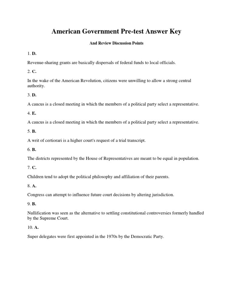 American Government Pre Test Answer Key