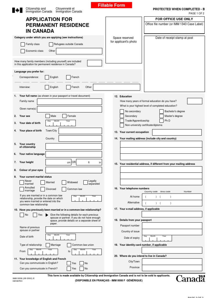 Permanent Residence Application Form IMM 0008Generic Marriage