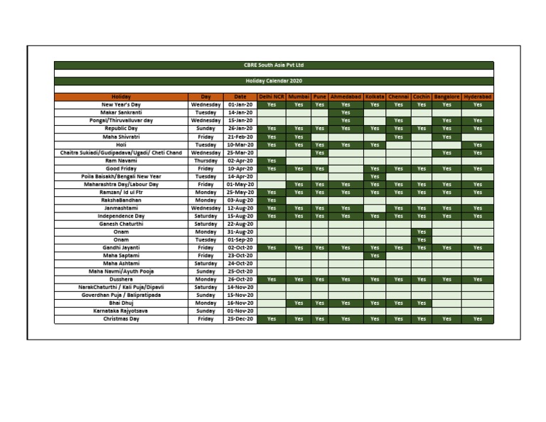 CBRE Holiday List 2020 Holidays Festival