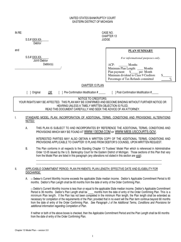Chapter 13 Model Plan Chapter 13 Bankruptcy