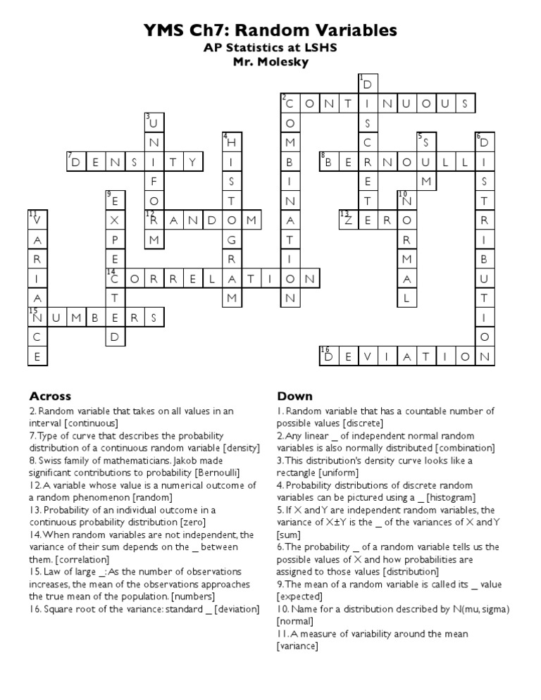 YMS Ch7 Random Variables AP Statistics at LSHS Mr. Molesky PDF