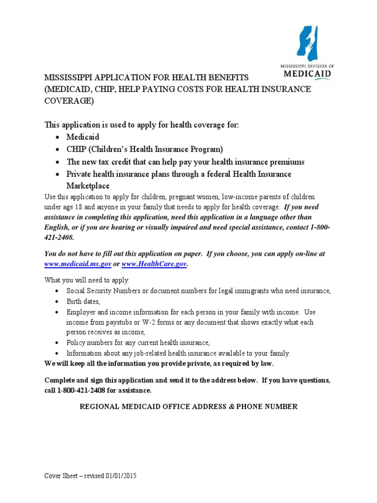 WWW Medicaid.Ms Gov WWW Healthcare.Gov Cover Sheet Revised 01
