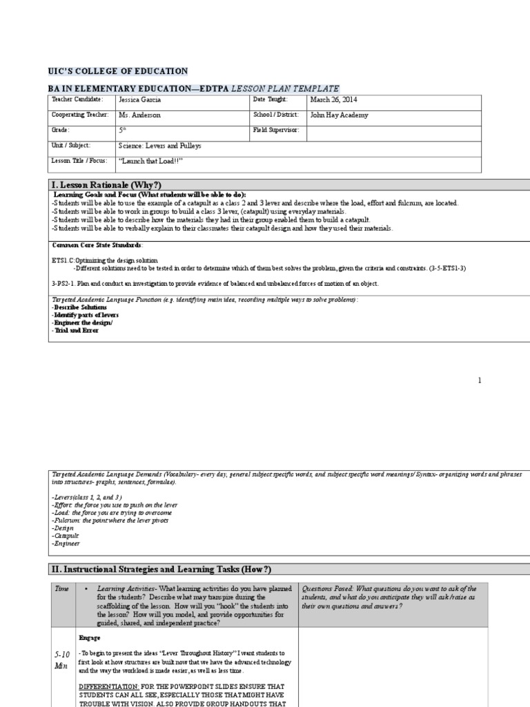 edtpa lesson plan template ed343leversrevised Lever Educational