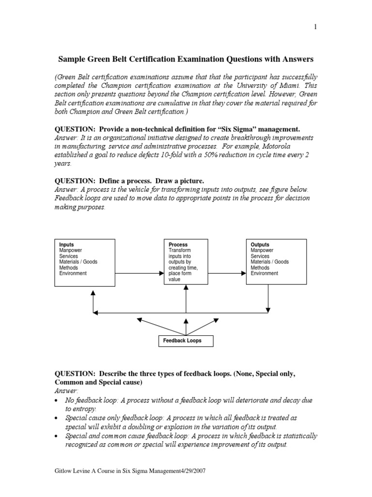 Sample Green Belt Examination Questions PDF Six Sigma Standard