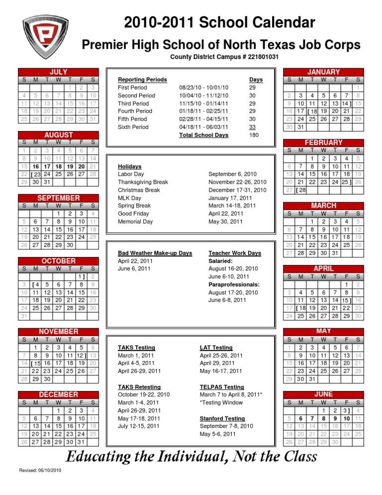 20102011 Calendar North Texas Job Corps Traditions Seasons