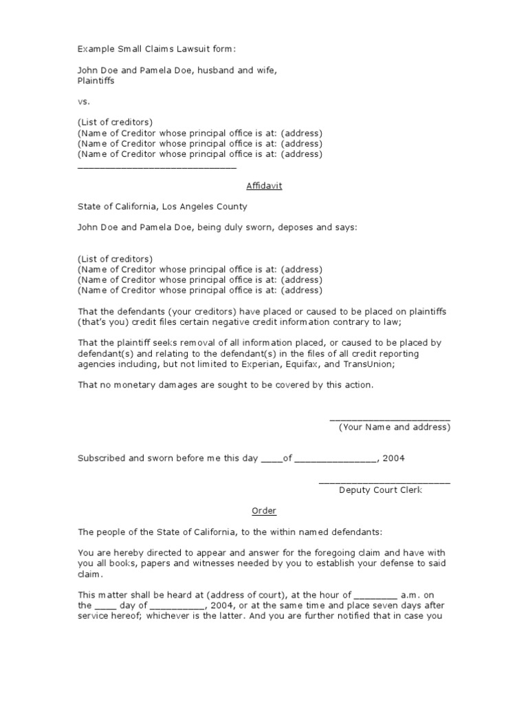Example Small Claims Lawsuit Form Lawsuit Virtue