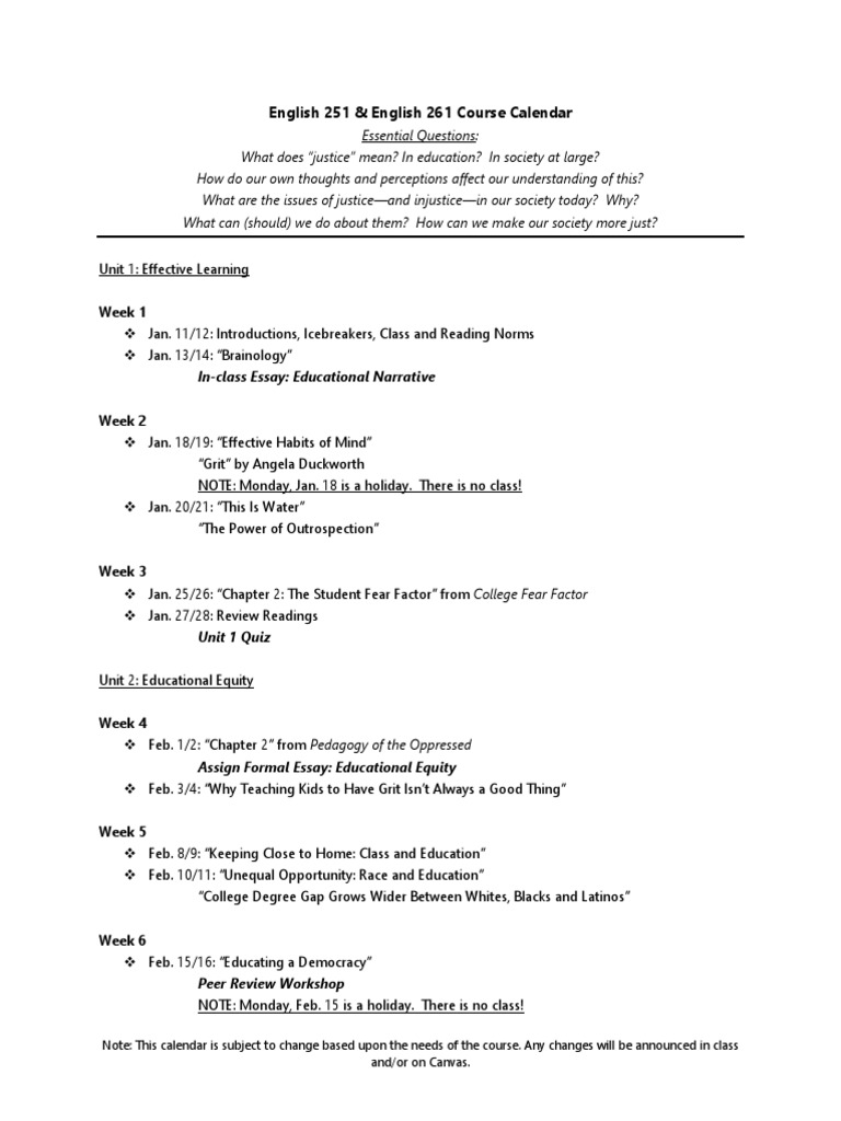251 261 Course Calendar PDF Economic Inequality Discrimination