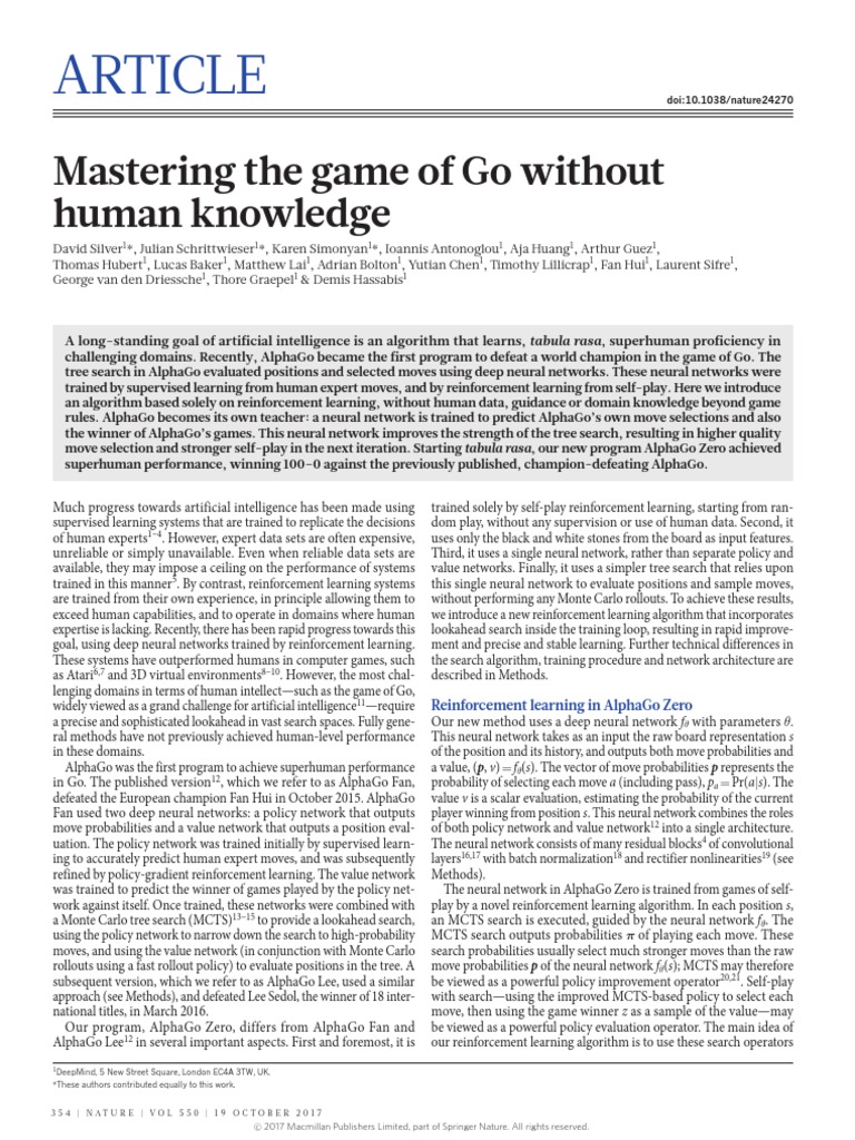 (PDF) Mastering the game of Go without human knowledge