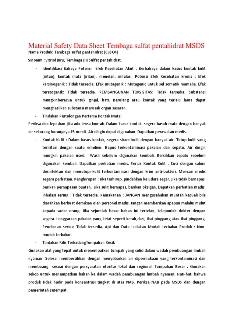 Material Safety Data Sheet Tembaga sulfat pentahidrat MSDS