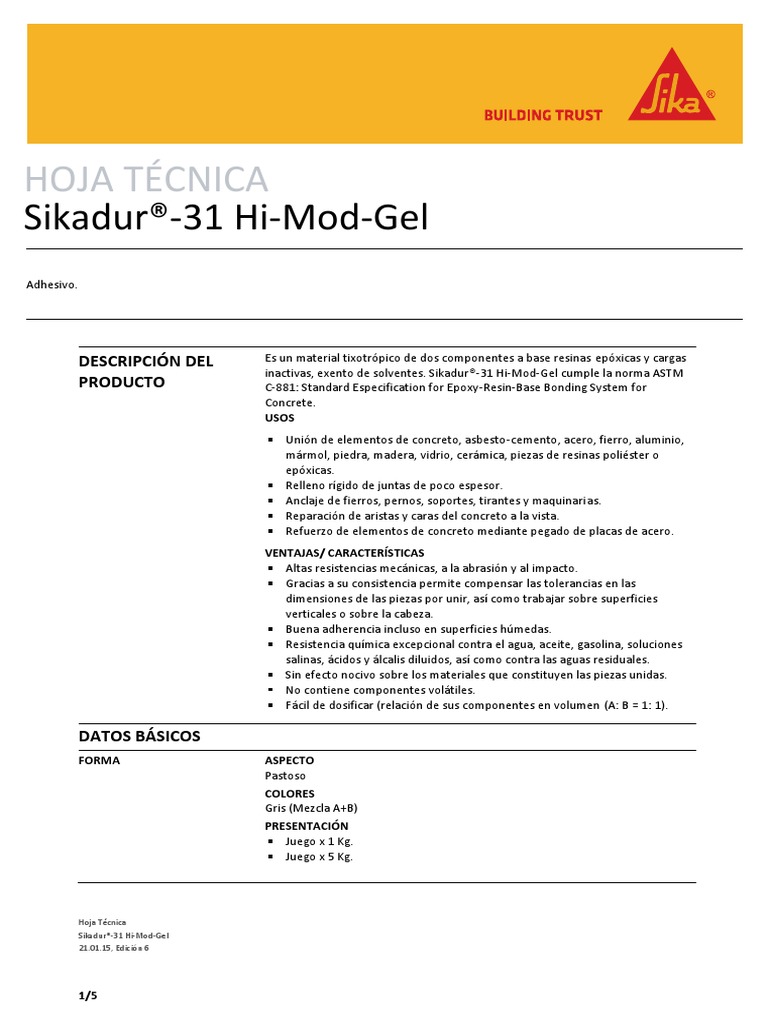 Data Sheet Sikadur 31 SIKA Epoxy Aluminio Free 30day Trial Scribd