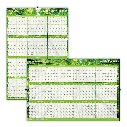 Blueline Yearly Laminated Wall Calendar, 36 x 24, Green, 2021 at Staples