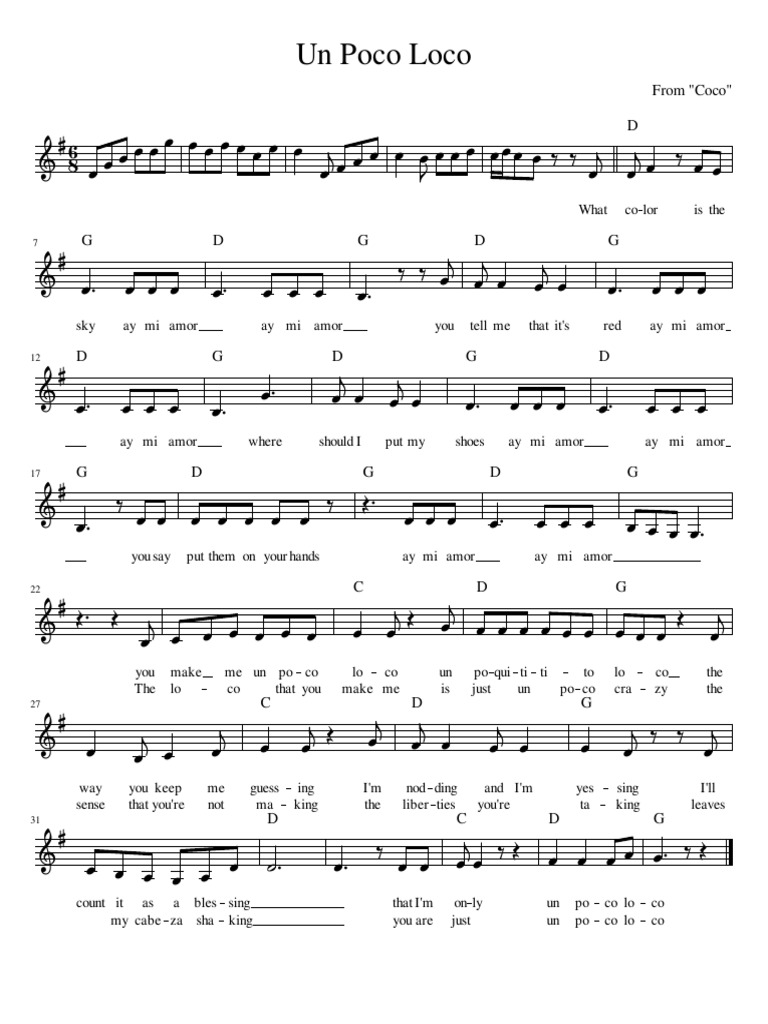 Un Poco Loco (from Coco) sheet music for ukulele (PDF) Ukulele songs
