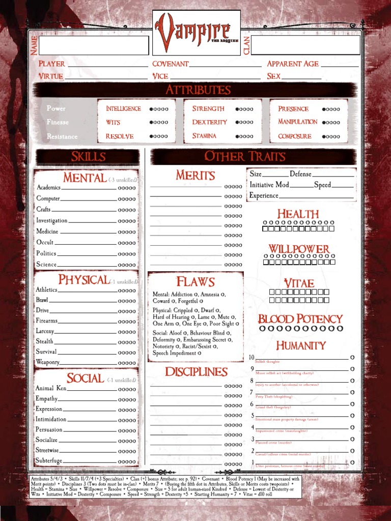 Vampire the Requiem Blank Character Sheet Wiki World of Darkness Amino