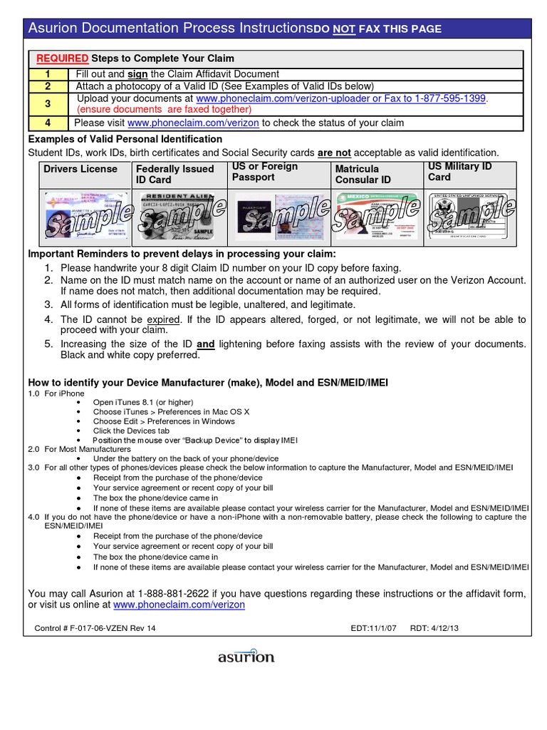 Verizon Phone Claim Affidavit Form