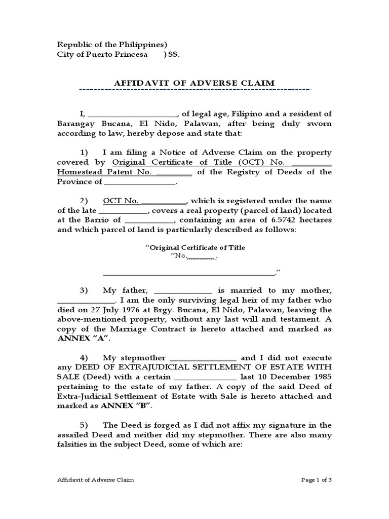 Web notice of adverse claim. (1) actual possession by the plaintif f of the property under claim of right or color of. Web this form is a generic example of a complaint to quiet title by a person claiming adverse possession. The adverse possession claimant can also sign a quit claim deed. Web provide them with a form they can.